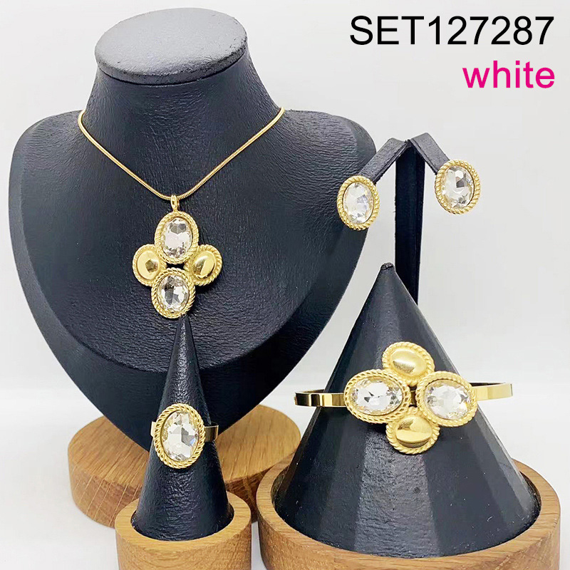 Level B Stainless Steel New Trendy Women Jewelry White Stone Oval Golden 4pcs SET