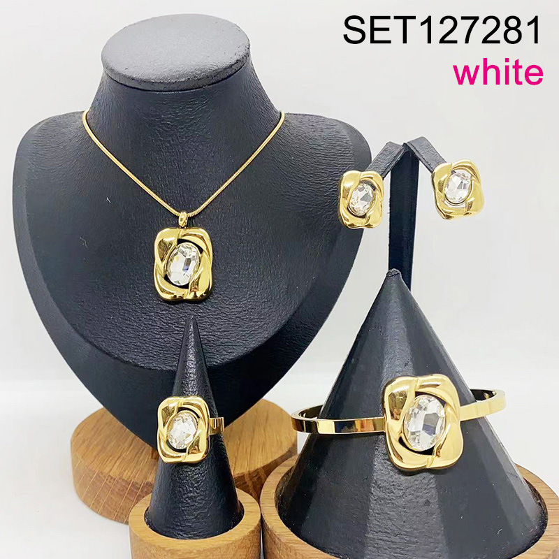 Level B Stainless Steel New Trendy Women Jewelry White Stone Geometry Golden 4pcs SET