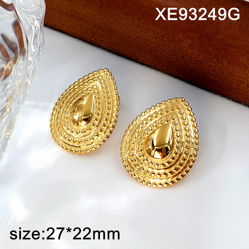 Level A Stainless Steel New Trendy Women Jewelry Water Drip Shape Golden Earrings