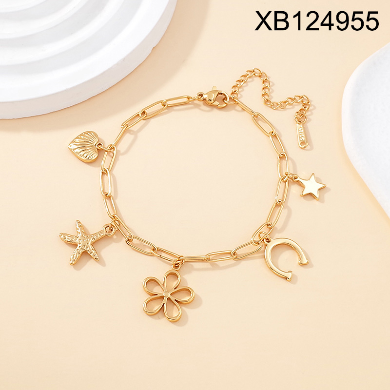 Level B Stainless Steel New Trendy Women Jewelry Flower Summer beach Starfish Heart Golden Bracelet