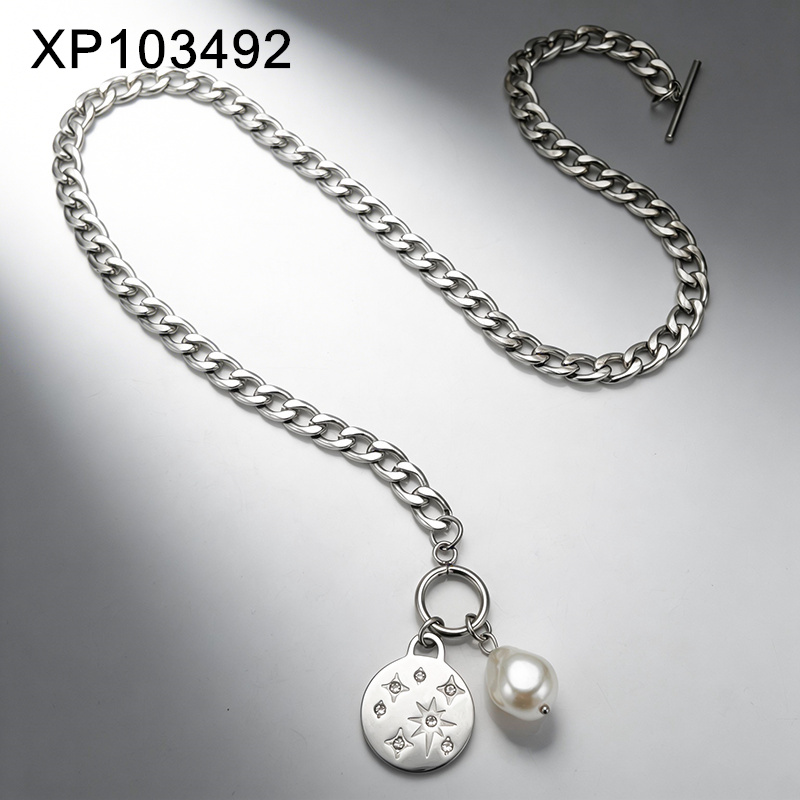 Home > Level B Stainless Steel New Trendy Women Jewelry Pearl Style/Plastic Beads Eight-Pointed Star Steel color Pendant