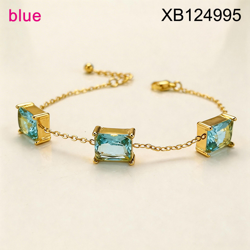 Level B Stainless Steel New Trendy Women Jewelry Rectangle Blue Crystal zirconium Golden Bracelet