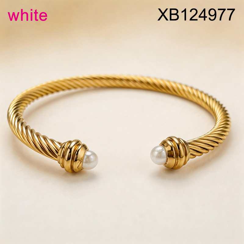 Level B Stainless Steel New Trendy Women Jewelry Pearl Style/Plastic Beads Golden Wire Rope Twist Open Bangle;Bangle size can be adjusted freely