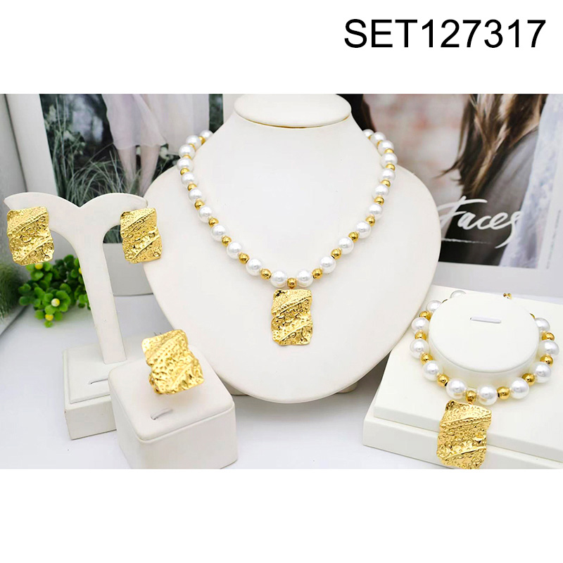 Level B Stainless Steel New Trendy Women Jewelry Pearl Style/Plastic Beads Rectangle Golden 4pcs SET
