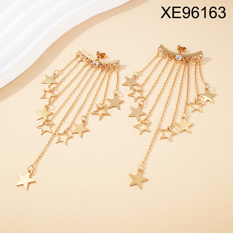 Home > Level B Stainless Steel New Trendy Women Jewelry Star Golden Tassel Earrings