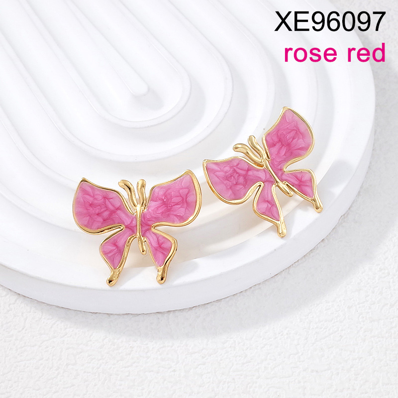 Level B Stainless Steel New Trendy Women Jewelry Drip Oil/Enamel Rose red Animal Butterfly Golden Earrings