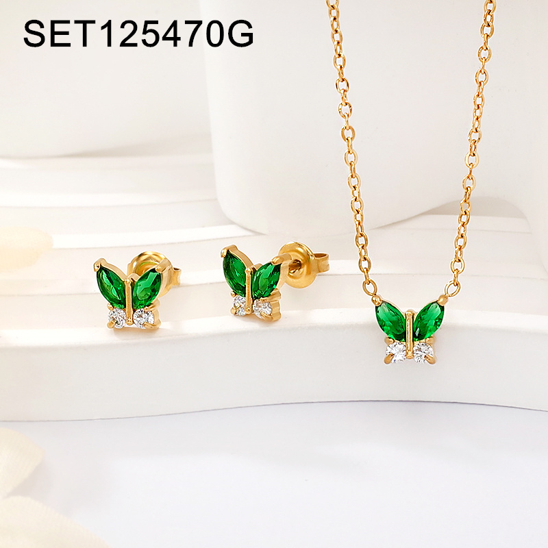 Home > Level A Stainless Steel New Trendy Women Jewelry Animal Butterfly Golden Glass Zircon SET