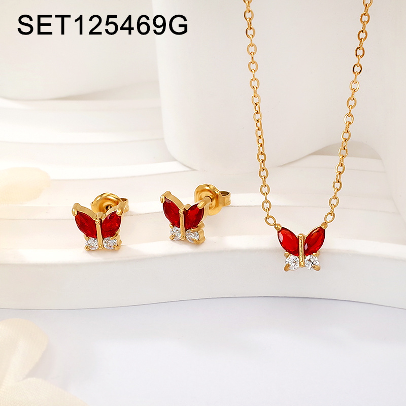 Home > Level A Stainless Steel New Trendy Women Jewelry Animal Butterfly Golden Glass Zircon SET