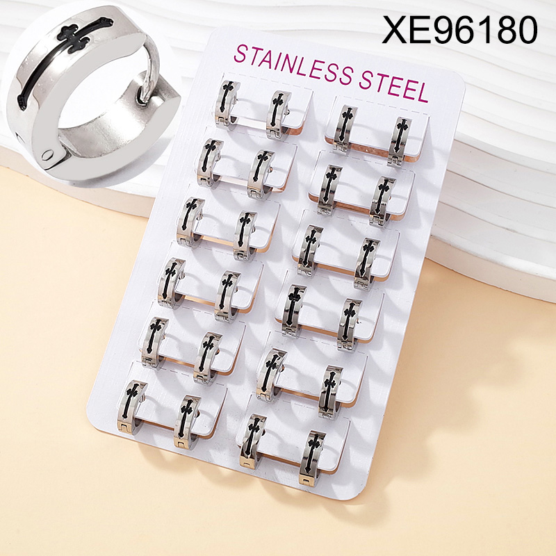 Level B Stainless Steel New Trendy Women Jewelry Cross Steel color Hoop Earrings