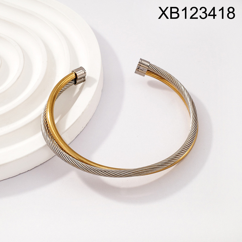 Level B Stainless Steel New Trendy Women Jewelry Two Tone Open Bangle;Bangle size can be adjusted freely