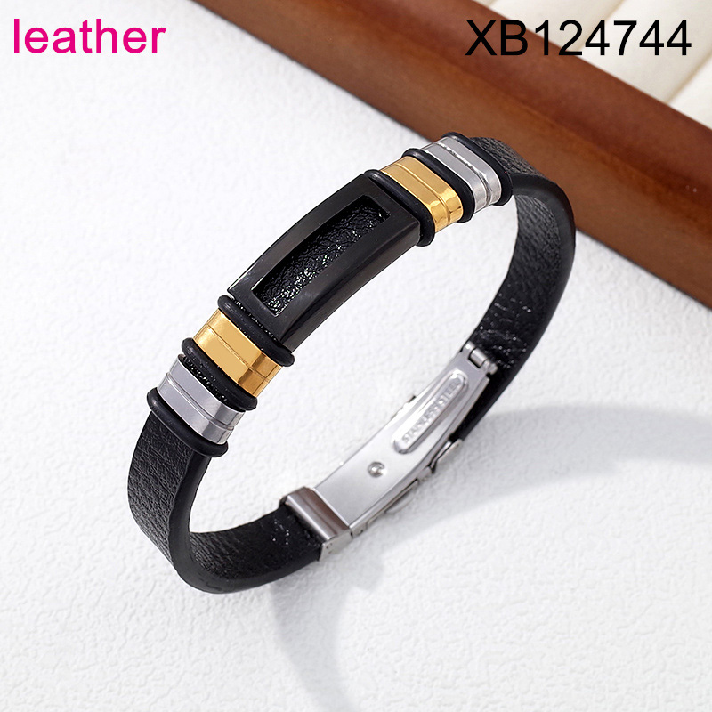 Home > Stainless Steel Bracelets > Level B Stainless Steel New Trendy Man Jewelry Three Tone Leather Bracelet