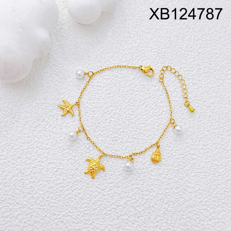 Level B Stainless Steel New Trendy Women Jewelry Pearl Style/Plastic Beads Summer beach Animal Turtle Starfish Shell Golden Bracelet