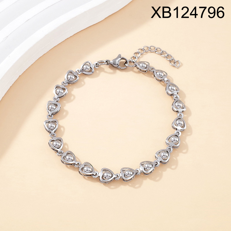 Level B Stainless Steel New Trendy Women Jewelry Heart Steel color Mother's Day Bracelet