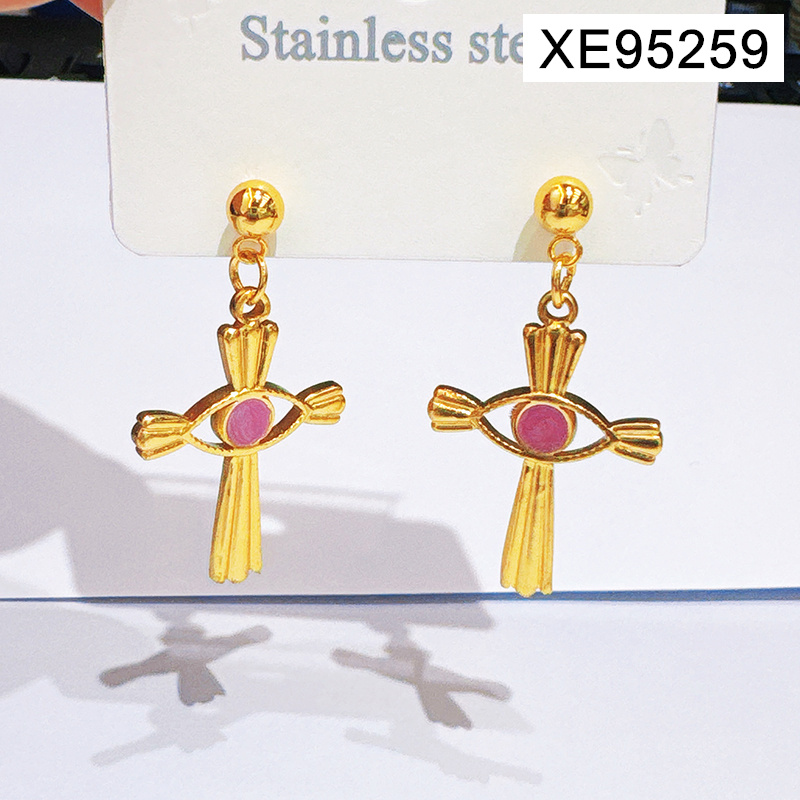 > Level B Stainless Steel New Trendy Women Jewelry Drip Oil/Enamel Cross Golden Earrings