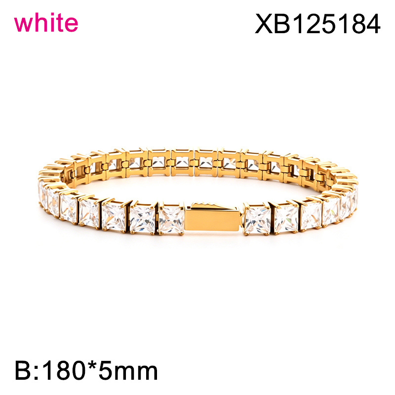 Home > Stainless Steel Bracelets > Other Bracelets > Level B Hot Sale Women Jewelry Golden White Square 316 Stainless Steel Cubic Zirconia Tennis Bracelet