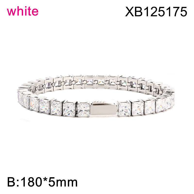 Level B Hot Sale Women Jewelry Steel color White Square 316 Stainless Steel Cubic Zirconia Tennis Bracelet