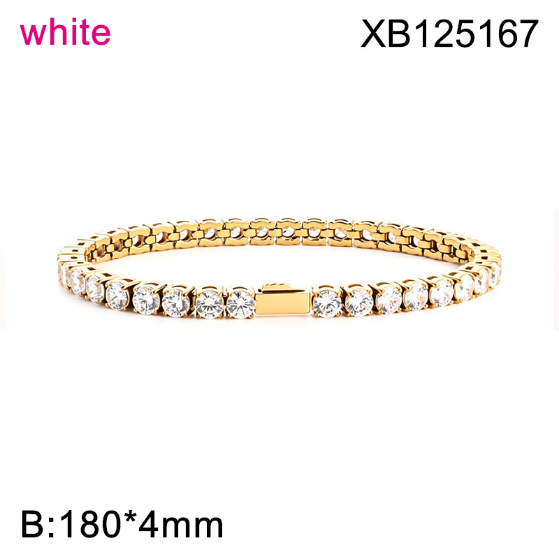 Home > Stainless Steel Bracelets > Other Bracelets > Level B Hot Sale Women Jewelry Golden White Round 316 Stainless Steel Cubic Zirconia Tennis Bracelet