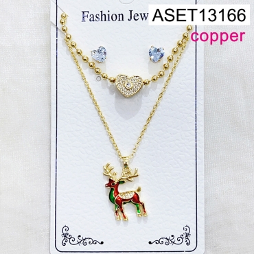 > Level B Fashion Jewelry New Trendy Women Jewelry Two Layers Chain Christmas Golden SET;Material:copper (cobre)