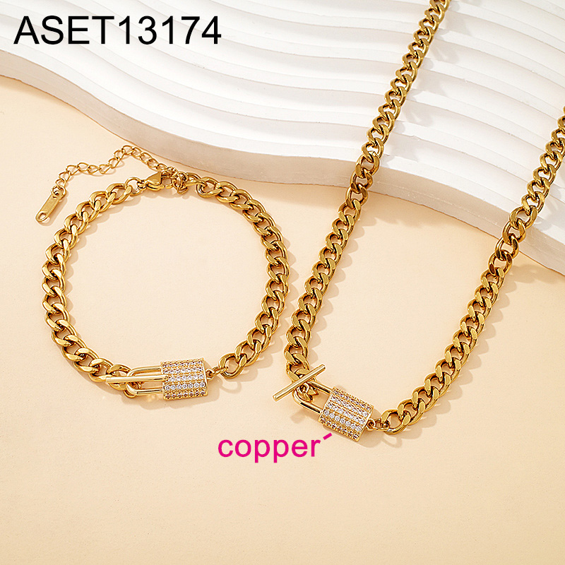 Level B Fashion Jewelry New Trendy Women Jewelry Lock Golden Chain SET;Material:copper (cobre)