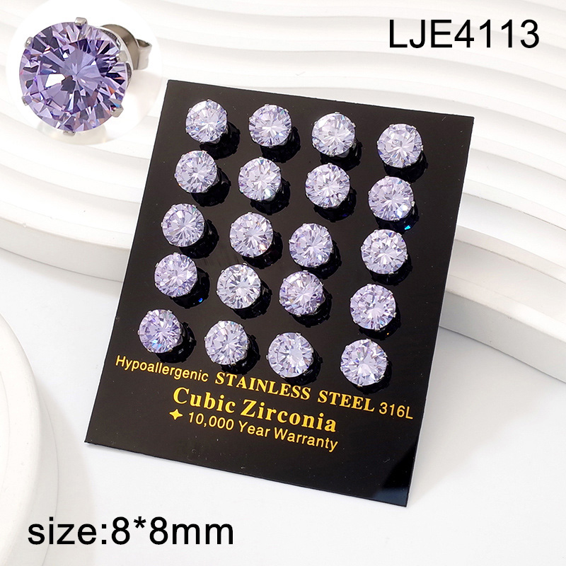 > Level A Stainless Steel Jewelry Steel color Turn blue Round Zircon Earrings