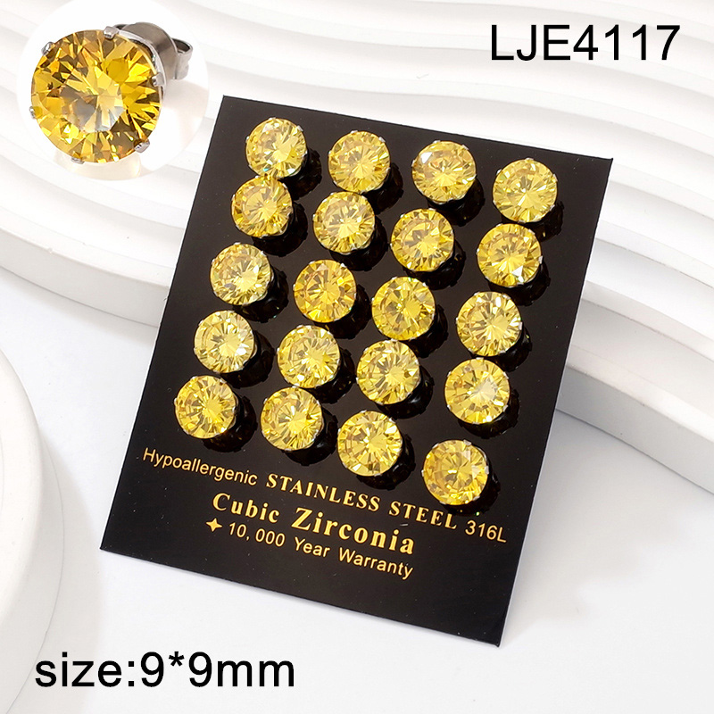 > Level A Stainless Steel Jewelry Steel color Golden yellow Round Zircon Earrings