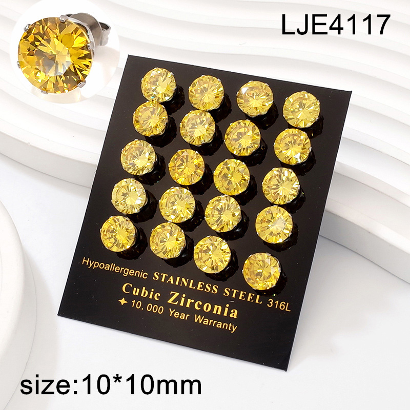 > Level A Stainless Steel Jewelry Steel color Golden yellow Round Zircon Earrings