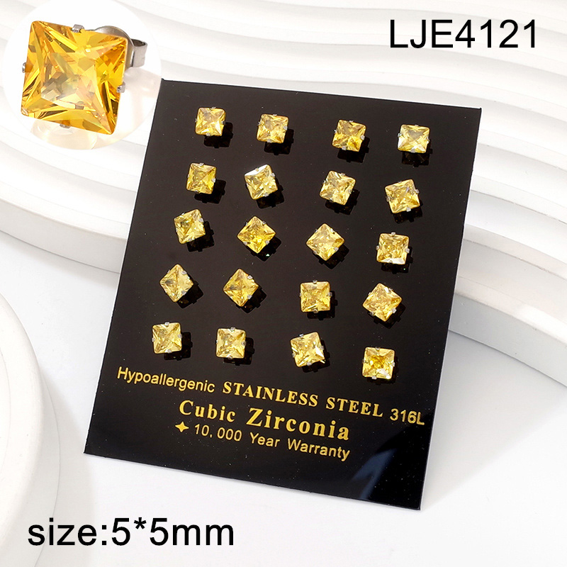 > Level A Stainless Steel Jewelry Steel color Golden yellow Square Zircon Earrings