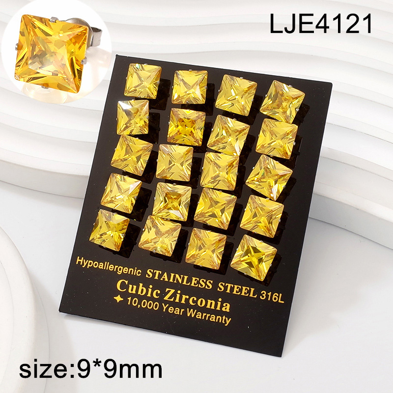 > Level A Stainless Steel Jewelry Steel color Golden yellow Square Zircon Earrings