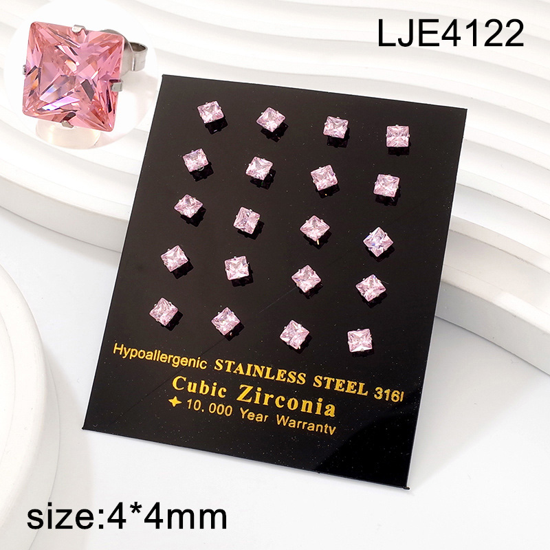 > Level A Stainless Steel Jewelry Steel color Pink Square Zircon Earrings