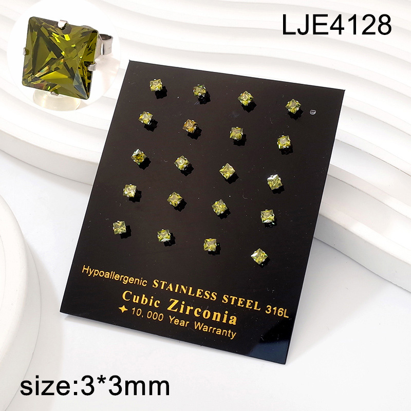> Level A Stainless Steel Jewelry Steel color Olive green Square Zircon Earrings