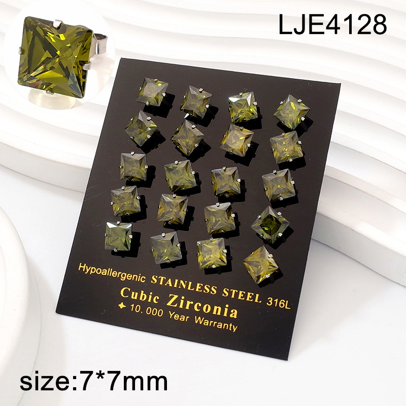 > Level A Stainless Steel Jewelry Steel color Olive green Square Zircon Earrings