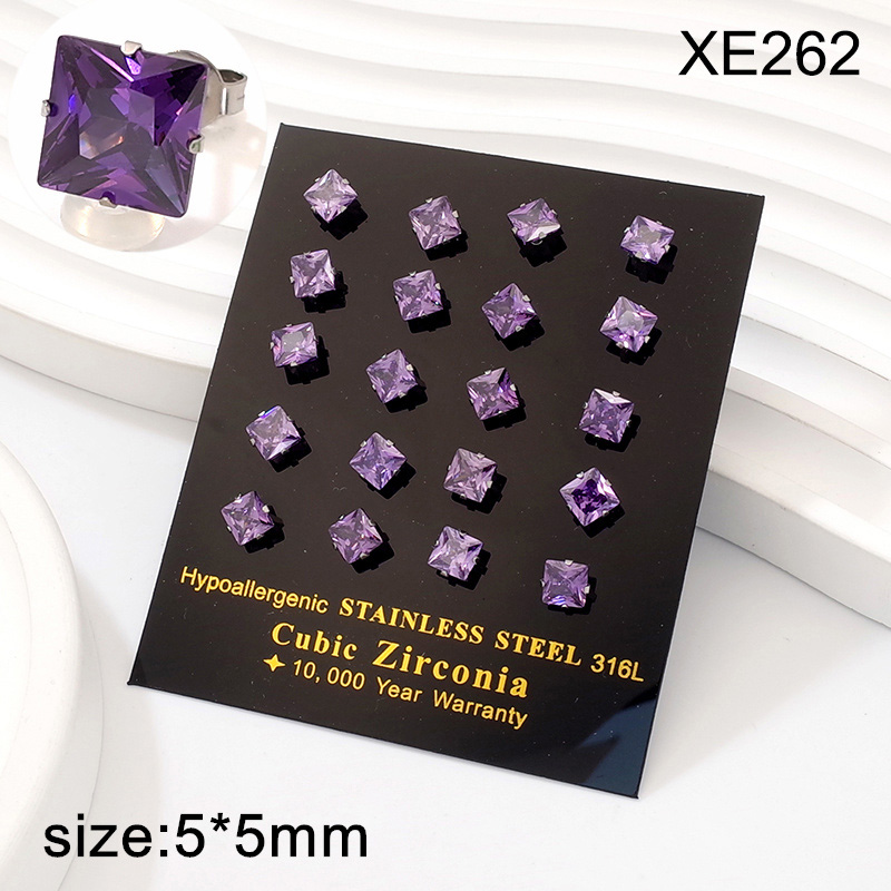 > Level A Stainless Steel Jewelry Steel color Purple Square Zircon Earrings