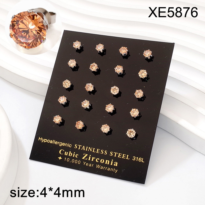 > Level A Stainless Steel Jewelry Steel color Champagne Round Zircon Earrings