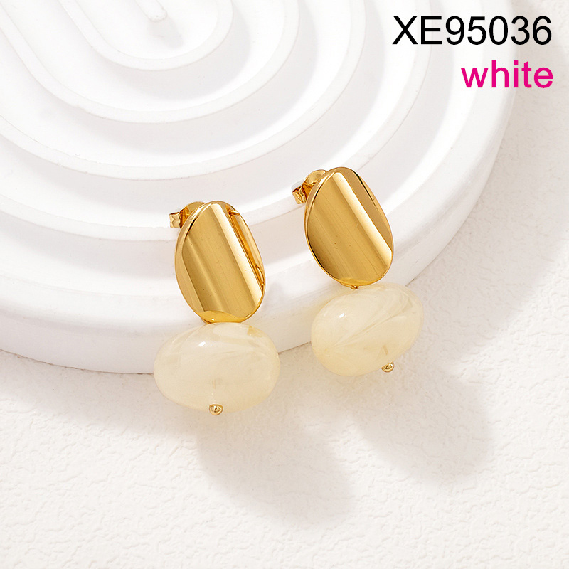 > Level B Stainless Steel New Trendy Women Jewelry White Resin Geometry Golden Earrings
