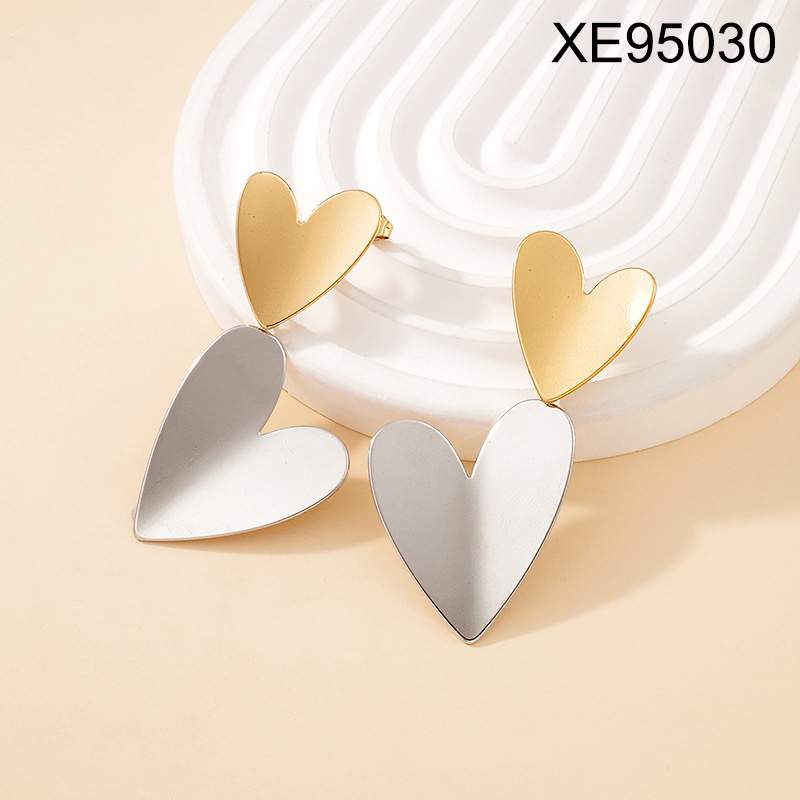 > Level B Stainless Steel New Trendy Women Jewelry Heart Two Tone Earrings