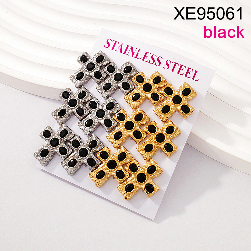> Level B Stainless Steel New Trendy Women Jewelry Cross Black Crystal zirconium Two Tone Earrings