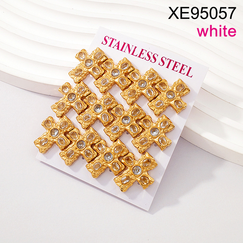 > Level B Stainless Steel New Trendy Women Jewelry Cross White Crystal zirconium Golden Earrings