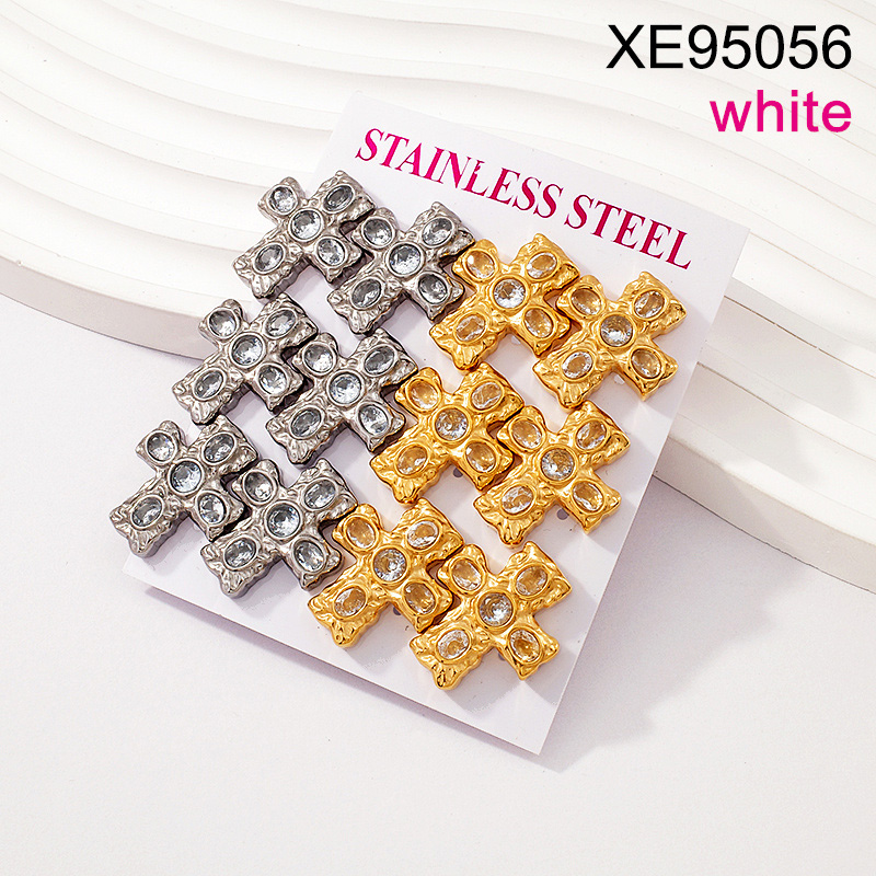 > Level B Stainless Steel New Trendy Women Jewelry Cross White Crystal zirconium Two Tone Earrings