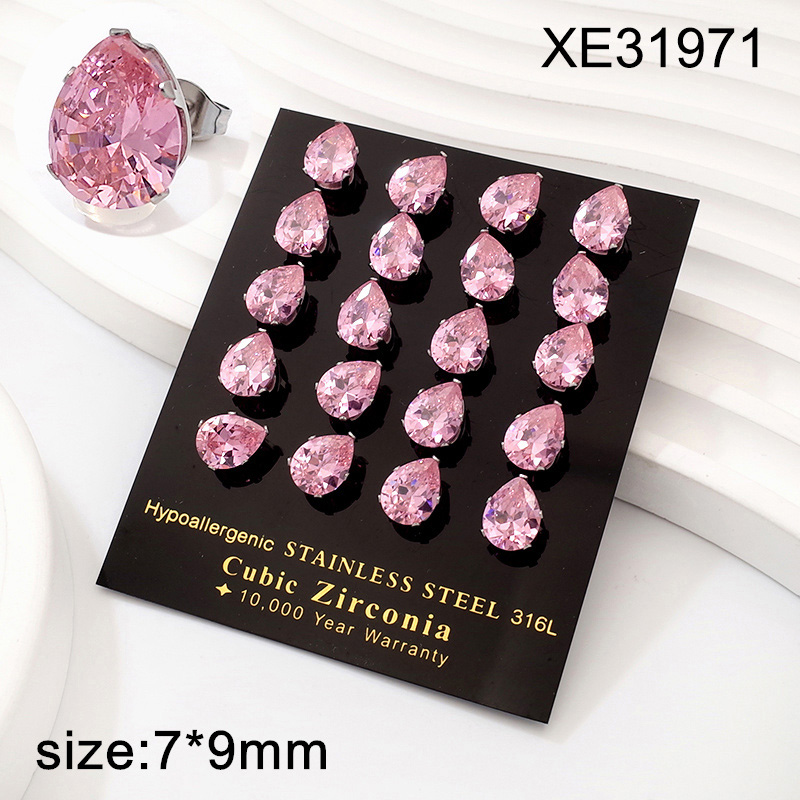 > Level A Stainless Steel Jewelry Hot Sale Steel color Pink Water Drip Zircon Earrings