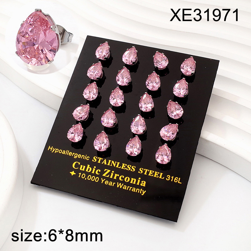 > Level A Stainless Steel Jewelry Hot Sale Steel color Pink Water Drip zirconium Earrings