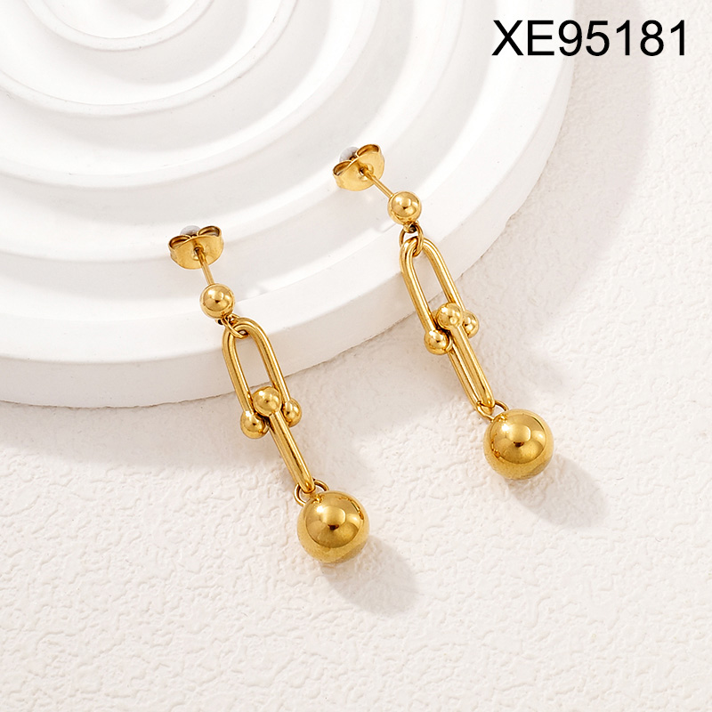 > Level A Stainless Steel New Trendy Women Jewelry Horseshoe buckle Bead Golden Earrings