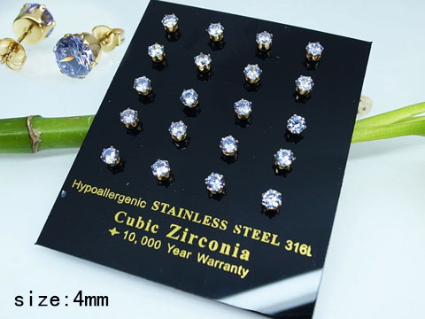> Stainless Steel Jewelry Golden Turn blue Round Zircon Earrings