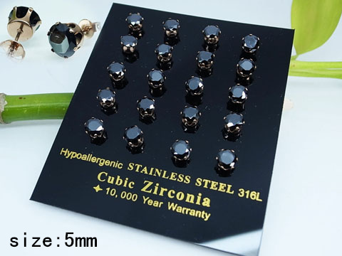 > Stainless Steel Jewelry Rose gold Black Round Zircon Earrings