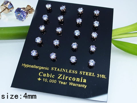 > Stainless Steel Jewelry Rose gold Purple Round Zircon Earrings
