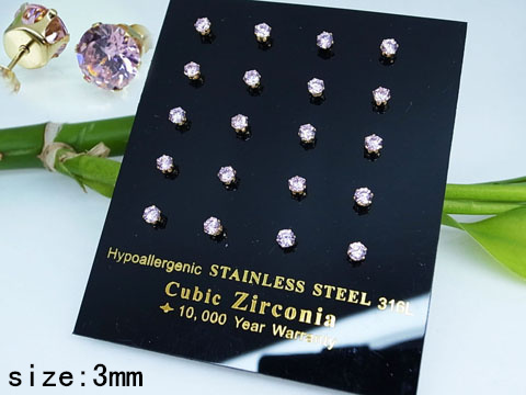 > Stainless Steel Jewelry Golden Pink Round Zircon Earrings