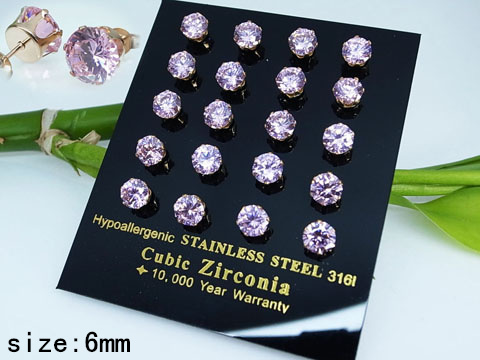 > Stainless Steel Jewelry Rose gold Pink Round Zircon Earrings