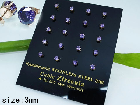 > Stainless Steel Jewelry Rose gold Purple Round Zircon Earrings