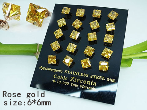 > Stainless Steel Jewelry Rose gold Yellow Square Zircon Earrings