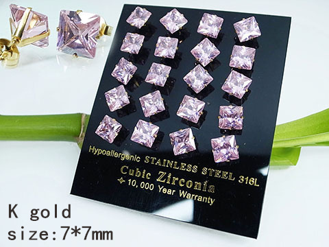 > Stainless Steel Jewelry Golden Pink Square Zircon Earrings
