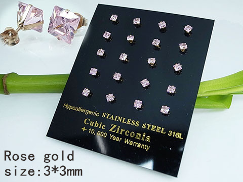 > Stainless Steel Jewelry Rose gold Pink Square Zircon Earrings